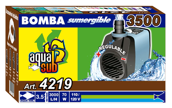 La Bomba De Agua Sumergible AQUASUB es la solución perfecta para tus necesidades acuáticas. Con una capacidad de 3000 litros por hora y una altura de elevación de 3 metros, esta bomba es ideal para acuarios, fuentes y muros llorones.